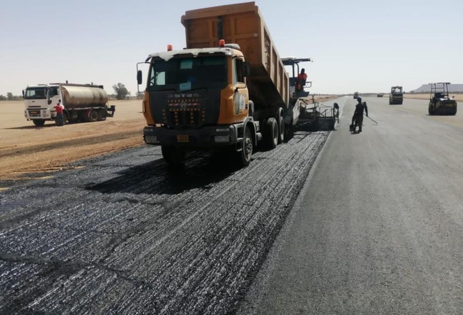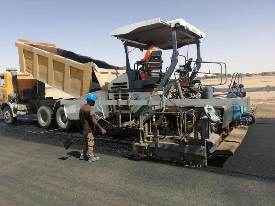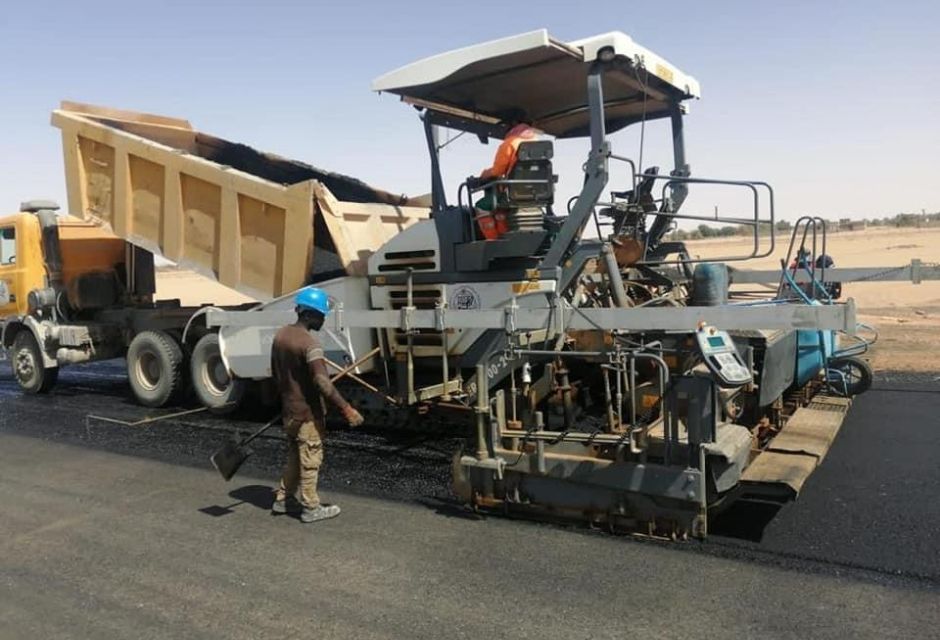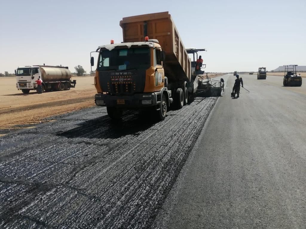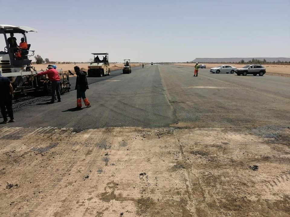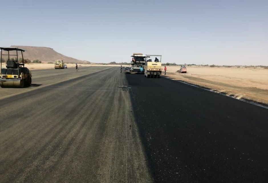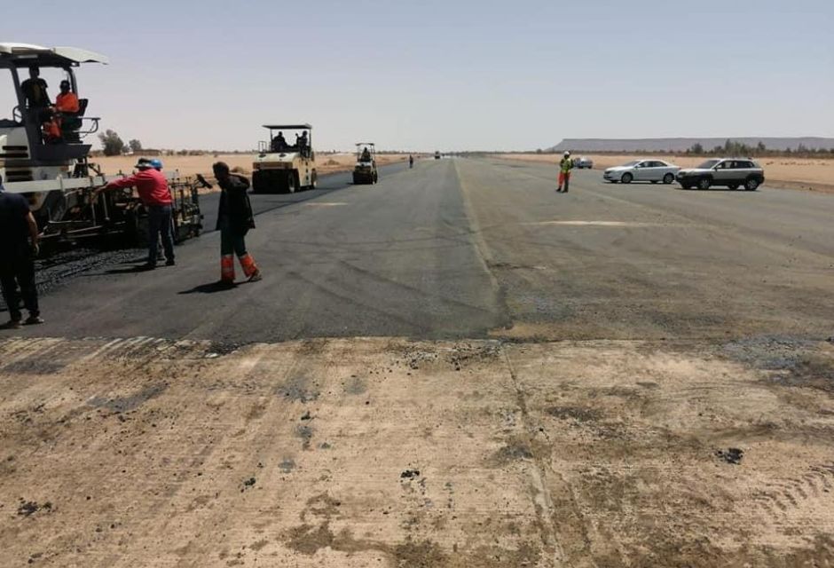 الانتهاء من تنفيذ أعمال الطبقة الأولى الرابطة لكامل المهبط وممر التوصيل وجاري التجهيز لرصف الطبقة الثانية.