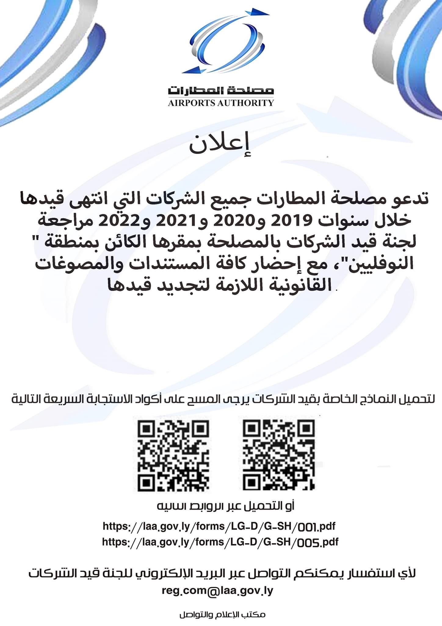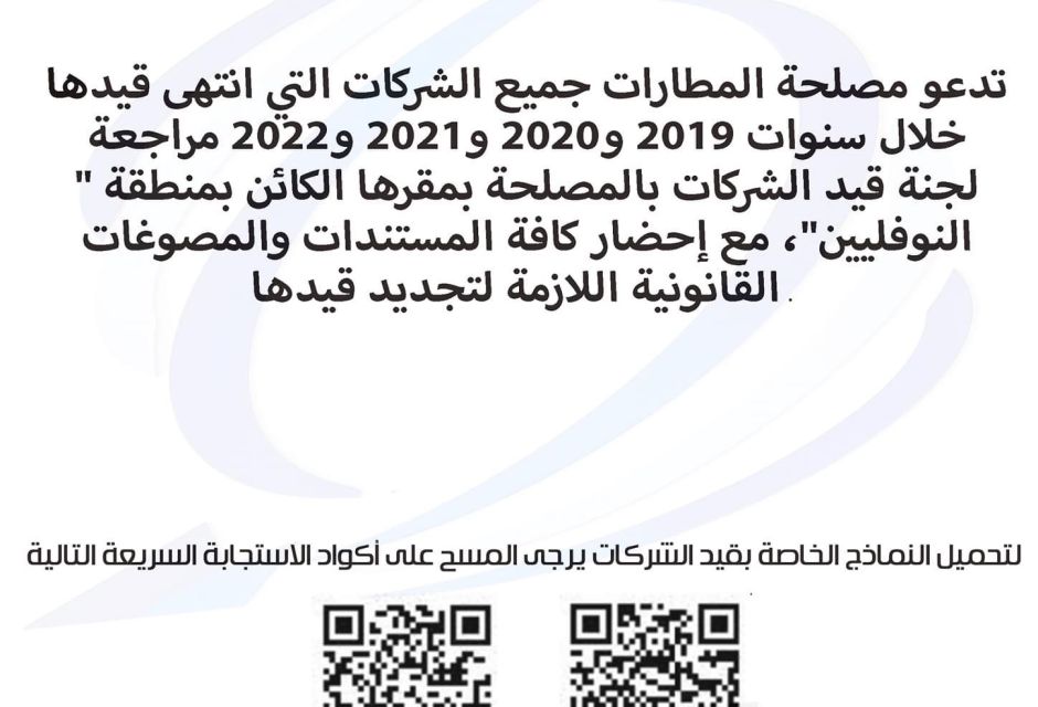 إعلان لجميع الشركات المسجلة في مصلحة المطارات