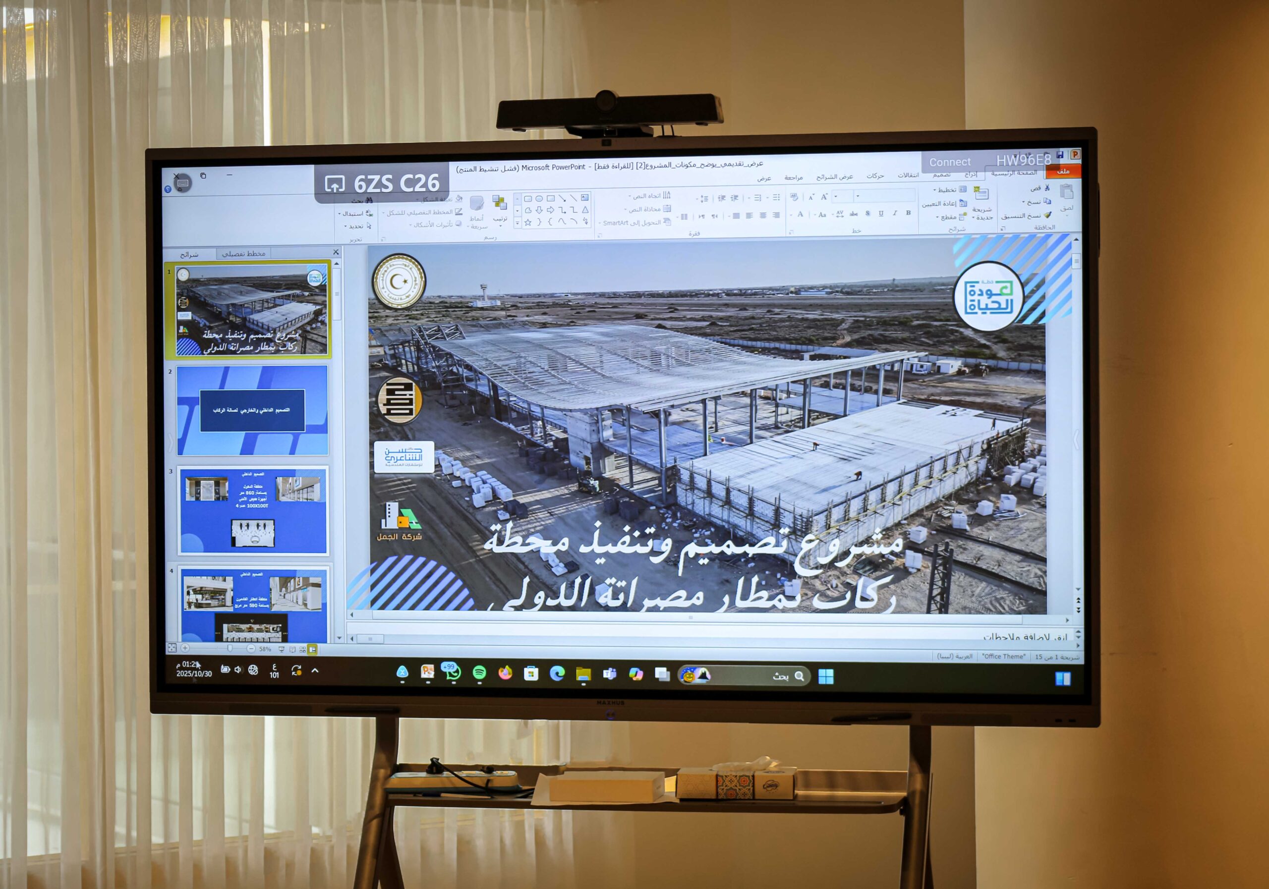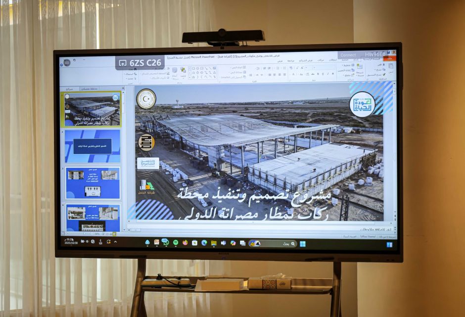 تم خلال الاجتماع تقديم عرض مرئي من قبل جهاز تنفيذ مشروعات المواصلات حول التصميمين الداخلي والخارجي لمحطة الركاب الجديدة بمطار مصراتة، وذلك في إطار مناقشة تنفيذ المشاريع المستهدفة بالمطار، واستعراض الإجراءات المتخذة في هذا الشأن، إضافةً إلى بحث التحديات التي تواجه سير العمل وسبل تذليلها لضمان تنفيذ المشروع وفق الخطط والجدول الزمني المعتمد.
