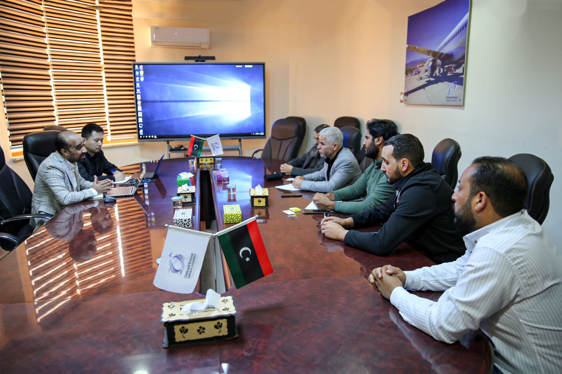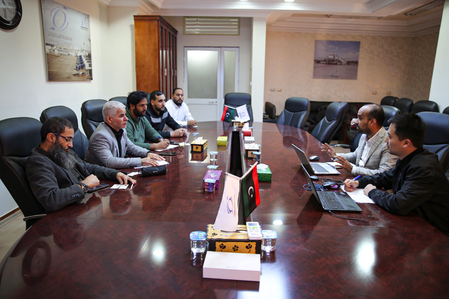 عقد بمقر مصلحة المطارات إجتماع ضم رئيس وموظفي قسم الاتصالات والمعلوماتية التابع لإدارة التجهيزات والمعدات بالمصلحة مع المدير الإقليمي بالشرق الأوسط وشمال أفريقيا لشركة “داهوا تكنولوجي” ومدير تطوير الأعمال بالشركة لعرض اعمال الشركة ومنتجاتها فيما يخص أمن ومراقبة المطارات بجانبيها البري والجوي من خلال منظومات الدوائر التلفزيونية المغلقة (CCTV) وعرضت الشركة استعدادها لتقديم الدعم الفني واللوجستي من خلالل اقتراح الحلول والتصاميم الخاصة بالمطارات وبما يضمن تغطية المطارات بأعلى التقنيات مما يساهم في تطبيق معايير الأمن والسلامة وبما يتلائم مع الموقع الجغرافي لكل مطار وبيئته المناخية وتم الإتفاق بتشكيل فريق مشترك بين الجانبين للقيام بزيارات ميدانية للمطارات لإعداد مجال عمل لها والإستفادة من خبرة الشركة في هذا المجال.