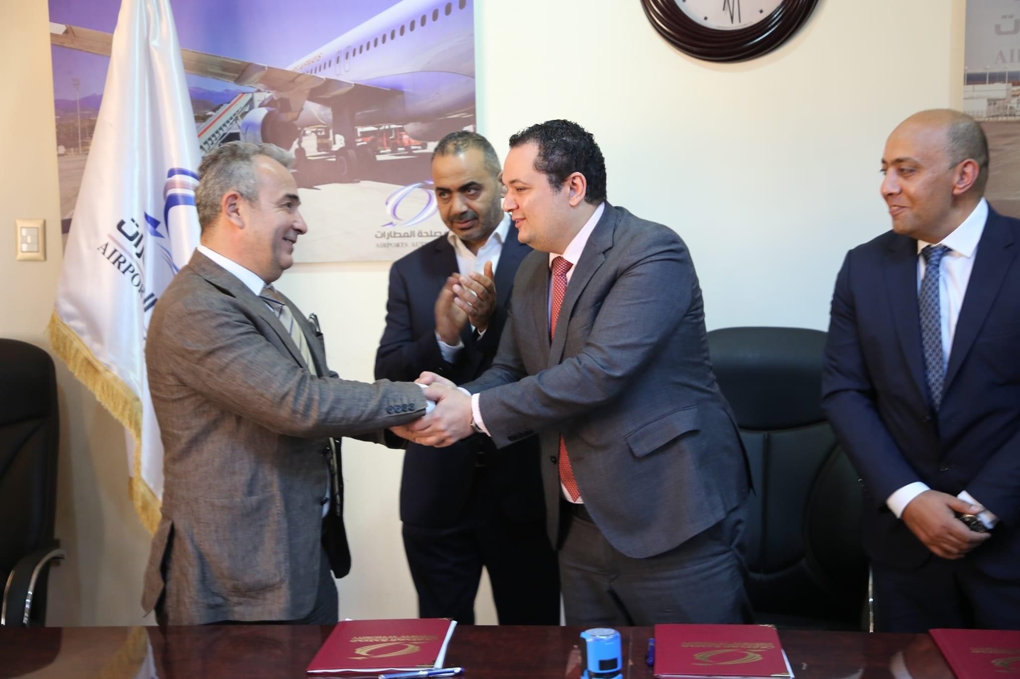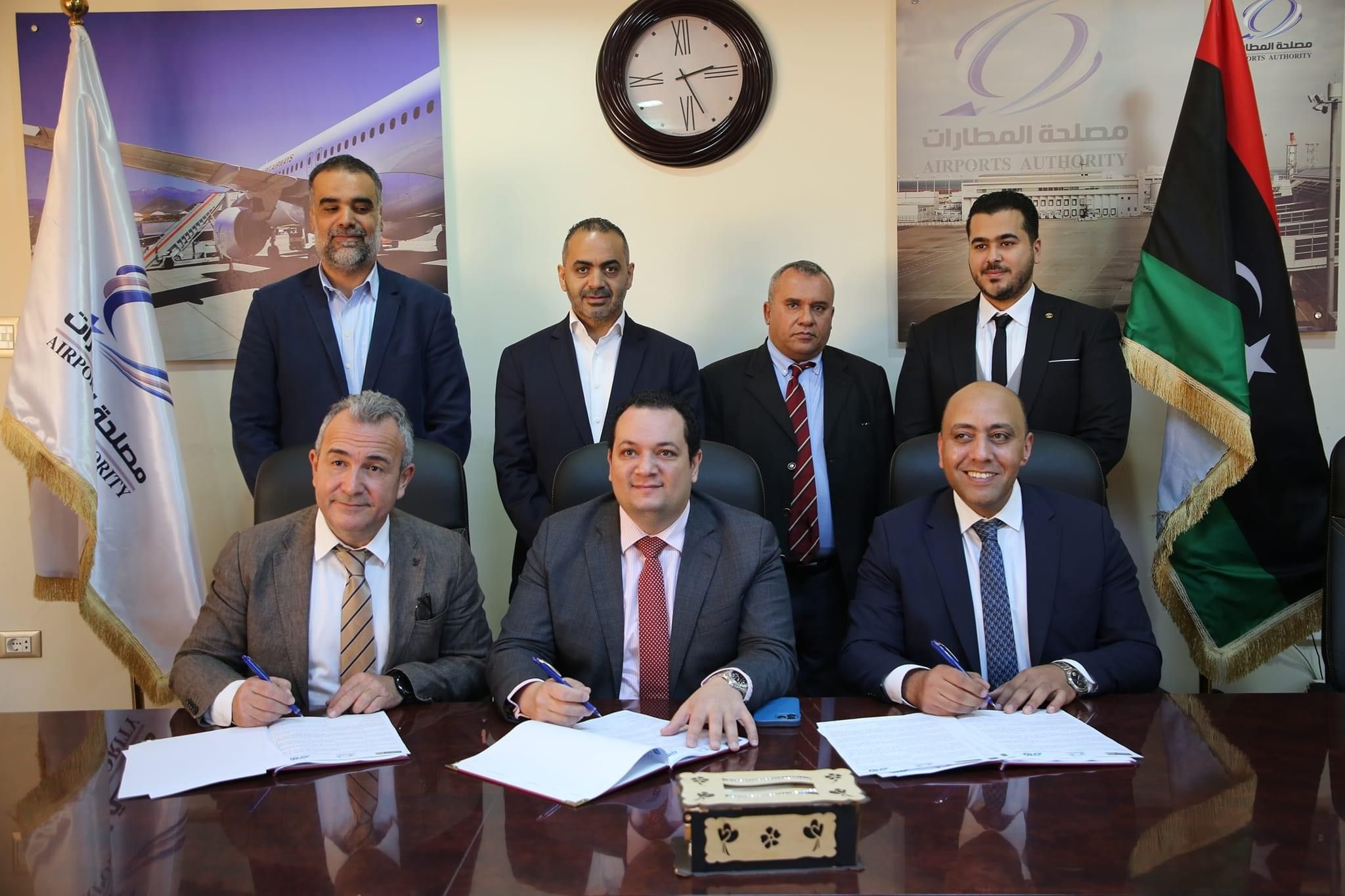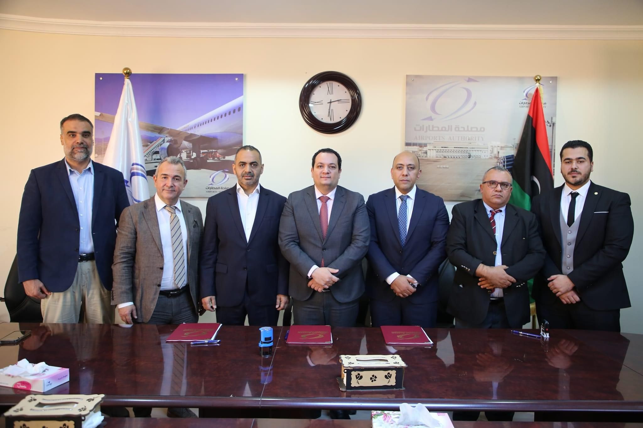 تم اليوم، الثلاثاء الموافق 03 أبريل 2024، التوقيع على مذكرة تفاهم بين مصلحة المطارات متمثلة في رئيسها الدكتور محمد بيت المال وشركتين أجنبيتين وهما شركة تيرمنال يابي التركية Terminal Yapı والتي مثلها في التوقيع السيد/ جينك كوسكون نائب رئيس مجلس الإدارة ومجموعة اي آر جي انتيرناشونال ERG International Group الإنجليزية والتي أنابها في التوقيع السيد/ محمد السيد إبراهيم بصفته مدير ادارة المشاريع. كما حضر التوقيع الدكتور كامل الجطلاوي عضو المجلس الأعلى للدولة والسيد/ خالد السويسي وكيل وزارة المواصلات لشؤون النقل الجوي والمهندس محمد فساطوي مساعد رئيس المصلحة، إضافة إلى عدد من مديري الإدارات والمكاتب بالمصلحة.
