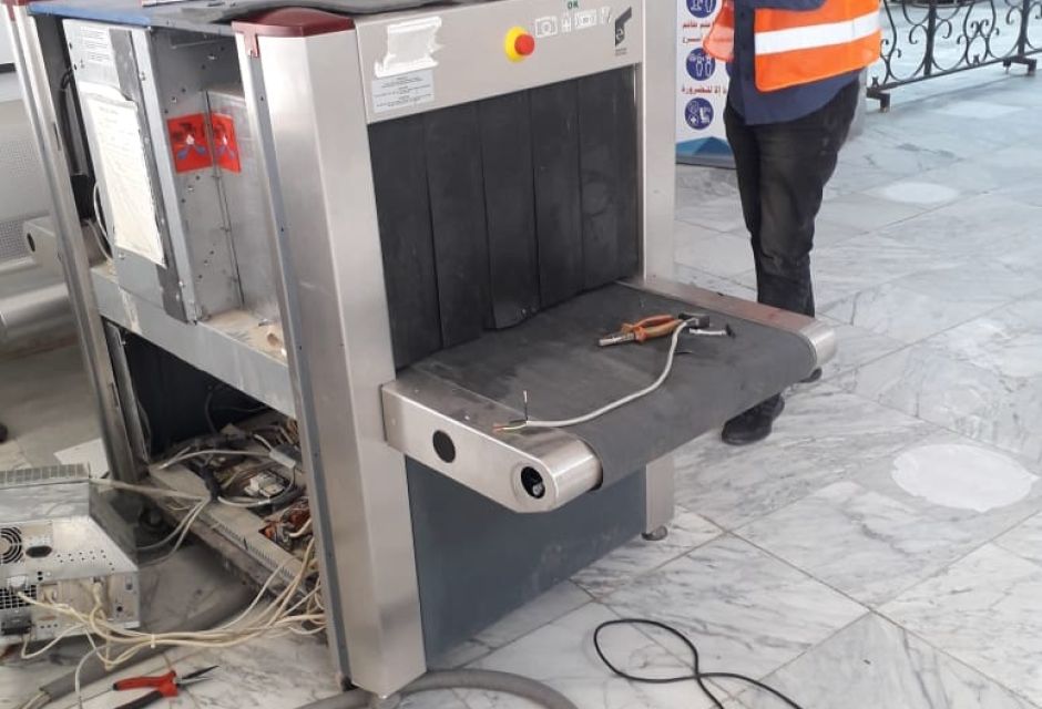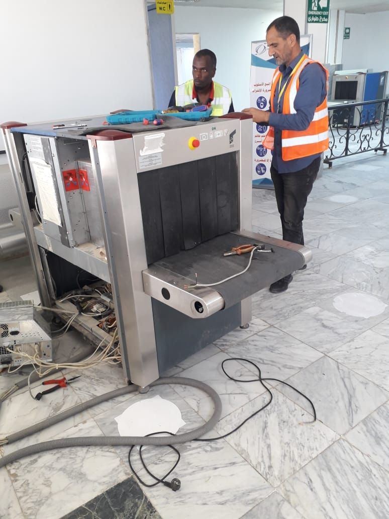قامت اللجنة المكلفة من قبل رئيس المصلحة بصيانة أجهزة التفتيش الأمني الآلي بالمطارات بزيارة لمطار سبها اليوم الثلاثاء الموافق 2023/11/14 لإجراء أعمال الصيانة الدورية والعاجلة للأجهزة واستبدال قطع الغيار اللازمة ومعايرتها للتأكد من كفاءتها التشغيلية وإطالة عمرها الافتراضي وبما يلبي معايير الأمن المنصوص عليها دولياً.