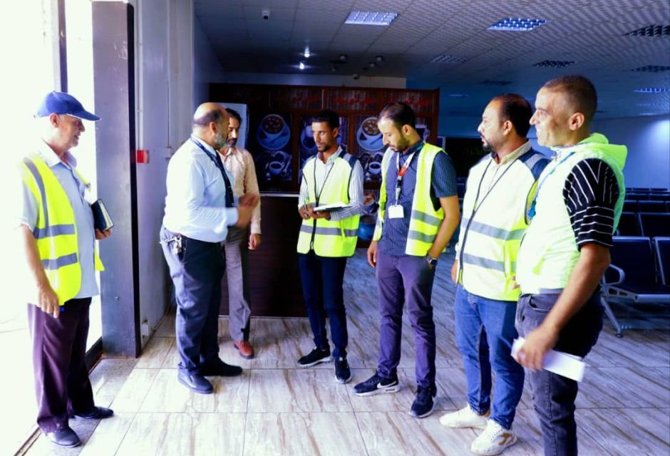فريق عمل مشكل من موظفين بقسم التجهيزات الخدمية التابع لإدارة التجهيزات والمعدات بمصلحة المطارات في زيارة لمطار بنينا ليقوم بجولة داخل محطة الركاب ومرافق المطار الاخرى رفقة مدير إدارة التشغيل والسلامة بالمطار وبعض الموظفين التابعين للإدارة لحصر احتياجات المطار الفنية والخدمية وتحديد النواقص في المعدات والأجهزة الخاصة بقسم السلامة الوطنية للسعي لتوفير ما امكن منها بما يضمن تحسين الخدمات المقدمة للمسافرين والرفع من مستوى العملية التشغيلية بالمطار والعمل بتوصيات المنظمة الدولية للطيران المدني في هذا الشأن.