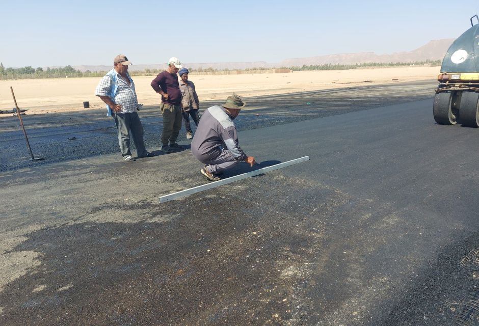إستمرار أعمال رصف الطبقة الأخيرة للمهبط وممر التوصيل، والبدء في أعمال رصف ساحة وقوف الطائرات بعد إزالة الطبقة الخرسانية المتهالكة.