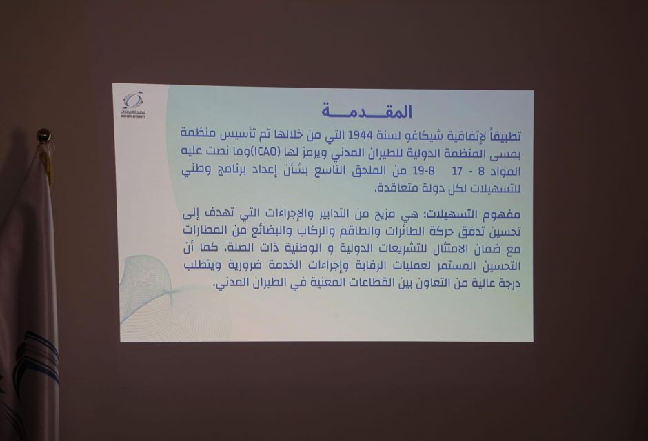 تمت صباح اليوم الموافق 13 مايو 2024 عقد ورشة عمل في مطار معيتيقة بعنوان “تسهيلات النقل الجوي تنفيذًا لخطط إدارة مطابقة المعايير”، وقد تم تنظيم الورشة بواسطة قسم الأذونات والتسهيلات بالمصلحة. تهدف هذه الورشة إلى تنفيذ البرنامج الوطني للتسهيلات، والذي يهدف إلى تخفيف الازدحام والتحديات التي تواجه حركة المسافرين وتيسير تنقلهم في المطار. تم تشكيل لجنة التسهيلات بالمطارات الرئيسية معيتيقة، مصراتة، سبها، بنينا، وفقًا للقرار رقم 267 لسنة 2023، الصادر عن رئيس مصلحة المطارات، والتي تعمل على تنفيذ متطلبات البرنامج الوطني لتسهيلات النقل الجوي.