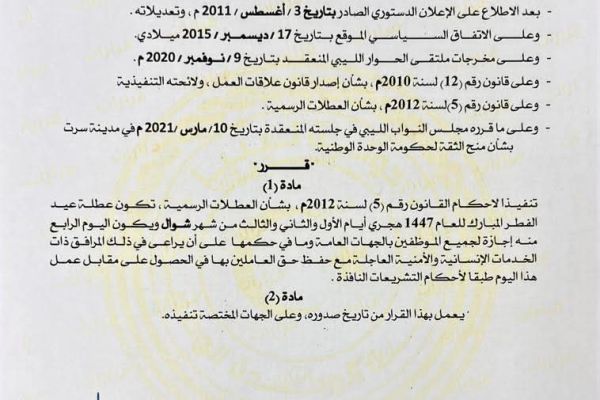 أصدر رئيس مجلس الوزراء عبدالحميد الدبيبة، القرار ر…