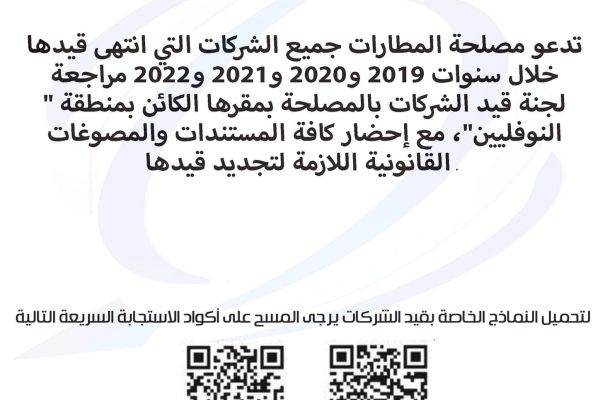إعلان لجميع الشركات المسجلة في مصلحة المطارات