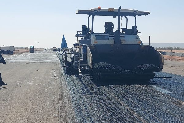 إستمرار أعمال رصف الطبقة الأخيرة للمهبط وممر التوصيل، وال…